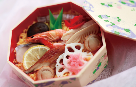 岡山名物「ばら寿司」を小箱に色とりどりに詰めました。